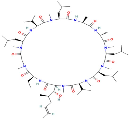 The structure of cyclosporine A.
