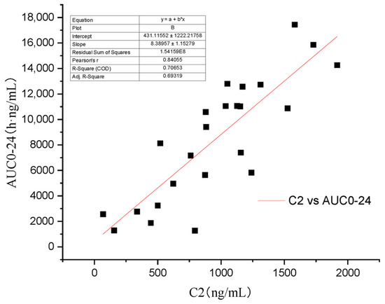 Regression analysis of the relationship between C2 and AUC0–24.