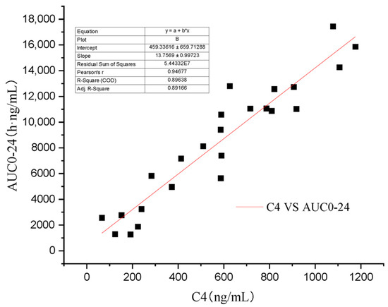 Regression analysis of the relationship between C4 and AUC0–24.