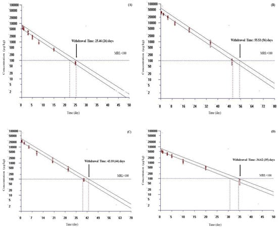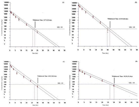 - European Medicines Agency. 2018. Available online: https://www.ema.europa.eu/en/documents/scientific-guideline/guideline-determination-withdrawal-periods-edible-tissues-revision-1_en.pdf (accessed on 15 April 2023).