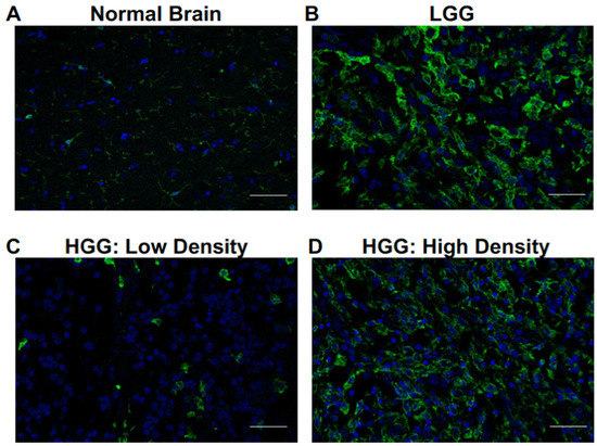 - Sorensen, M.D.; Dahlrot, R.H.; Boldt, H.B.; Hansen, S.; Kristensen, B.W. Tumour-associated microglia/macrophages predict poor prognosis in high-grade gliomas and correlate with an aggressive tumour subtype. Neuropathol. Appl. Neurobiol. 2018, 44, 185–206. [Google Scholar] [CrossRef]