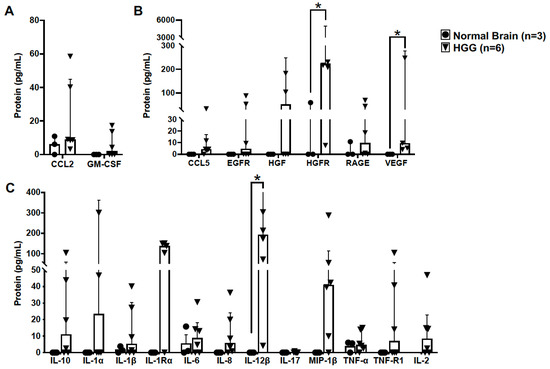 - Conroy, S.; Kruyt, F.A.E.; Wagemakers, M.; Bhat, K.P.L.; den Dunnen, W.F.A. IL-8 associates with a pro-angiogenic and mesenchymal subtype in glioblastoma. Oncotarget 2018, 9, 15721–15731. [Google Scholar] [CrossRef] [PubMed]