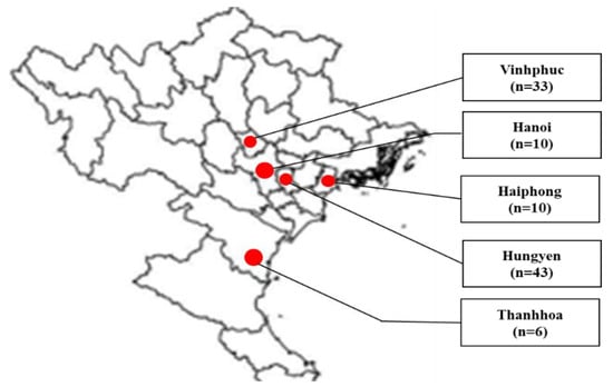 - Nguyen, V.T.; Le, T.L.; Le, T.K.A.; Vu, T.B.H.; Le, T.H.N.; Phasuk, P.; Setrabutr, O.; Shirley, H.; Vinje, J.; Anh, D.D.; et al. Detection and molecular characterization of noroviruses and sapoviruses in children admitted to hospital with acute gastroenteritis in Vietnam. J. Med. Virol. 2012, 84, 290–297. [Google Scholar]