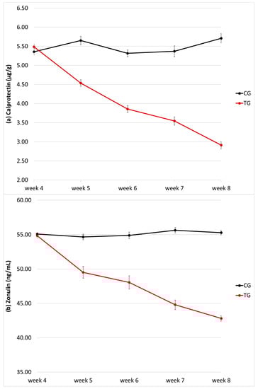 3.4. Faecal Calprotectin and Zonulin Concentration
