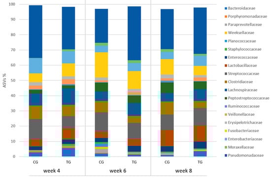 - Blake, A.B.; Cigarroa, A.; Klein, H.L.; Khattab, M.R.; Keating, T.; Van De Coevering, P.; Lidbury, J.A.; Steiner, J.M.; Suchodolski, J.S. Developmental stages in microbiota, bile acids, and clostridial species in healthy puppies. J. Vet. Intern. Med. 2020, 34, 2345–2356. [Google Scholar] [CrossRef]