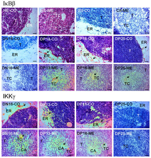 The fixed thymic tissues were prepared as described previously [16]. Immunohistochemistry analysis for IκBβ and IKKγ in the thymic tissue and stain of hematoxylin and eosin (HE) was performed as described previously [5] to detect the locations of the IκBβ and IKKγ proteins in the maternal thymus.