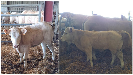Five-month-old Blonde d’Aquitaine heifer following surgical treatment of a physeal fracture of the tibia. There remains a slight left hind limb extension at rest.