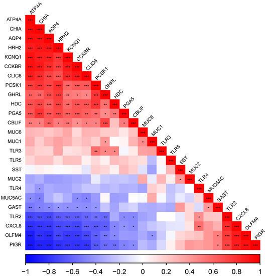 | Gastrin production | GAST | 0.000 | 0.002 | 0.212 | 0.020 | 0.9521 | <0.0001 | <0.0001 |