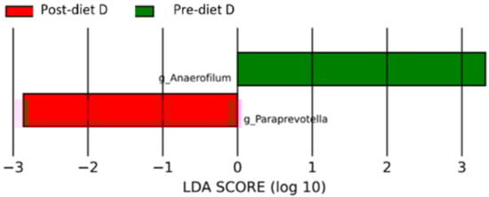 19]. This genus was observed, albeit in small amounts, in all our study groups, with an important decrease in post-diet samples.