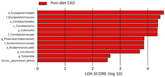 Escherichia-Shigella was particularly increased in CAD dogs only, with a decrease in post-diet samples, suggesting that a higher isolation of