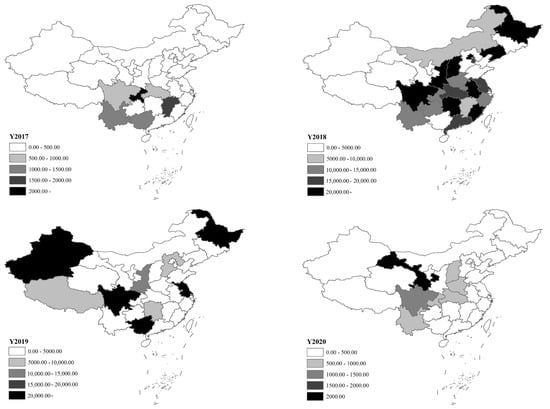 The data for this study were obtained from the Official Veterinary Bulletin of the Ministry of Agriculture and Rural Affairs of the People’s Republic of China, China Animal Husbandry and Veterinary Yearbook, and China Statistical Yearbook. Considering that the Official Veterinary Bulletin from the Ministry of Agriculture and Rural Affairs of the People’s Republic of China was available only for October 2021 and earlier, the pig epidemic data for 2021 were only for January–September. Therefore, the time interval examined in this study was set as 2017–2020, where 2017 was the normal year before the outbreak of African swine fever, 2018–2019 was the most serious period of African swine fever, and 2020 was the year when the epidemic was better controlled. Overall, the time interval selected in this study covered the current round of the pig epidemic, and the pig industry in each region and its impact could better reflect the corresponding epidemic risk prevention and control capacity and its problems.
