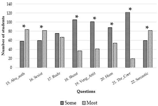 | 21. My teachers threaten/coerce the students (Mis profesores amenazan/coaccionan a los alumnos) | Thr_Coer | |