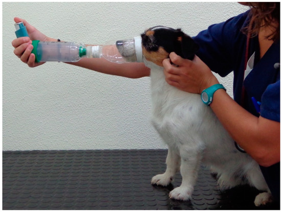 The research team conducted a personal training session with the owners of each dog included in the study to teach them the correct method of use of the inhaled medication. The owners were instructed to progressively acclimate the dog to the facemask before activating the MDI.
