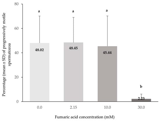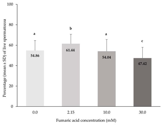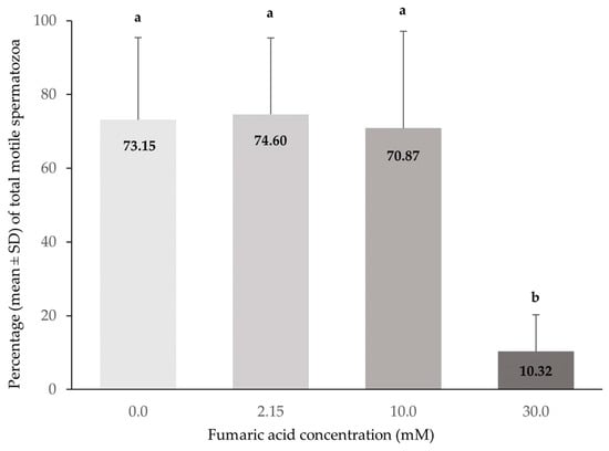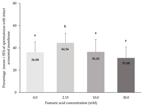 - Rekkas, C.; Saratsi, A.; Panagiotidis, I.; Samartzi, F.; Basioura, A.; Tsiokos, D.; Ligda, C. Effect of Fumaric Acid Addition to Soy Lecithin Extender on Post-Thaw Parameters of Buck Semen Quality; Reproduction in Domestic Animals: Thessaloniki, Greece, 2022; Volume 57, (Suppl. 4), p. 86. [Google Scholar]