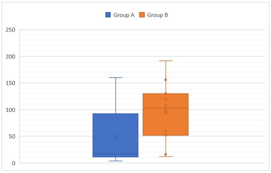 Data were expressed by standard descriptive statistics and presented as mean or median and range (minimum-maximum). The Student’s t-test was used to compare age between Groups A and B. Categorial variables were compared among groups using the chi-squared test. Each of which initially included variables that were significant at p < 0.05 in simple logistic regression. Statistical analyses were performed using available statistical software (BiostatGV, http://biostatgv.sentiweb.fr/, accessed on 6 September 2023).