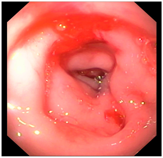 Endoscopic abnormalities are presented in Table 6 and included: a gaping, atone and opened ileocolic junction in eight cases (four in Group A and four in Group B, Figure 6), absence of cecum in one case, colonic stenosis of variable degrees in 12 cases (two in Group B and 10 in Group A, Figure 7), erosive or marked macroscopic signs of colopathy in five cases (four in Group B and one in Group A), non-specific, slight-to-moderate signs of colopathy in eight cases (three in Group B and five in Group A) and an unremarkable colon in two cases (one each in Groups A and B).
