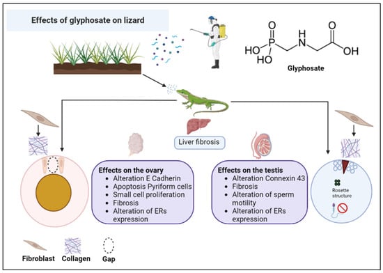 - Verderame, M.; Chianese, T.; Rosati, L.; Scudiero, R. Molecular and histological effects of Glyphosate on testicular tissue of the lizard Podarcis siculus. Int. J. Mol. Sci. 2022, 23, 4850. [Google Scholar] [CrossRef]