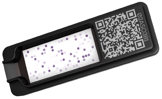 Representation of an ALEX2/PAX cartridge, which enables the simultaneous multiplex testing of up to 300 allergens and their controls. Photo courtesy of MacroArray Diagnostics, Vienna, Austria.