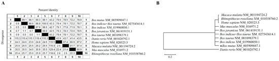 Sequence analysis of yak IL-22. (A) Homology analysis of yak IL-22. (B) Phylogenetic tree of yak IL-22.
