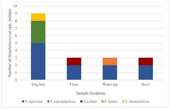 - Nocera, F.P.; Pizzano, F.; Masullo, A.; Cortese, L.; De Martino, L. Antimicrobial resistant staphylococcus species colonization in dogs, their owners, and veterinary staff of the veterinary teaching hospital of Naples, Italy. Pathogens 2023, 12, 1016. [Google Scholar] [CrossRef]