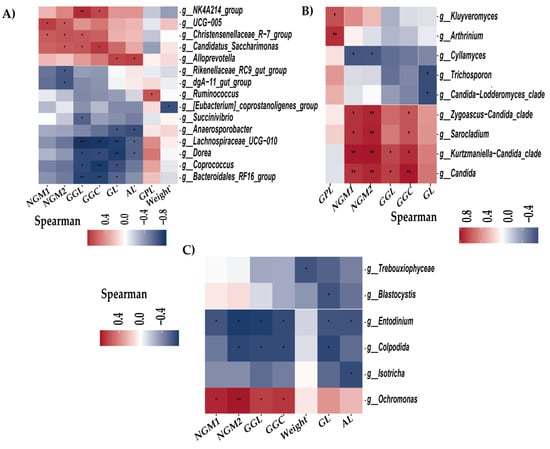 - Nan, S.; Li, J.; Kuang, Y.; Feng, J.; Wang, H.; Niu, J.; Wu, Y.; Zhang, W.; Nie, C. Differential Microbial Composition and Interkingdom Interactions in the Intestinal Microbiota of Holstein and German Simmental × Holstein Cross F1 Calves: A Comprehensive Analysis of Bacterial and Fungal Diversity. Microorganisms 2024, 12, 486. [Google Scholar] [CrossRef]