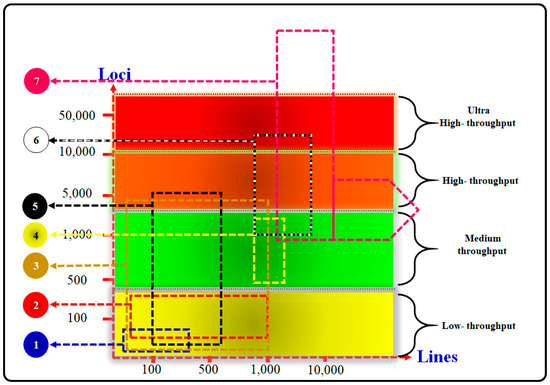 Marker assay platforms for genotyping, from low to ultra-high-throughput; (1) SSRs, (2) BeadXpress, (3) KASPar assay, (4) Golden-Gate assay, (5) DArT assay, (6) Infinium assay, and (7) genotyping by sequencing: simple sequence repeats (SSRs) assay, also known by various names such as microsatellites, short tandem repeats, variable number tandem repeats, simple sequence length polymorphisms, and sequence-tagged microsatellite analysis, is a pivotal technique in genetic studies. These microsatellites consist of repetitive DNA segments with motifs ranging from one to six or more base pairs, typically repeated up to 50 times or more. These sequences are interspersed throughout an organism’s genome, both in coding and non-coding regions, and exhibit higher mutation rates compared to other DNA areas. This mutability results in significant genetic diversity, making them ideal markers in various genetic applications, including population genetics, breeding programs, and conservation biology. Microsatellite techniques are employed across diverse studies using both low- and high-throughput genotyping methods. Simple sequence repeats involve various techniques such as sequence-tagged microsatellite site, fluorescent in-situ hybridization of chromosome oriented, retrotransposon-microsatellite amplified polymorphism, selective amplification of microsatellite polymorphic loci, multiple primer polymerase chain reaction/inter-simple sequence repeat, random amplified microsatellite polymorphisms, degenerate random amplified polymorphic DNA, recombinant random amplified microsatellite polymorphisms, random amplification of hypervariable motifs, and random amplification of microsatellite polymorphic DNA, each offering specific advantages for identifying and analyzing microsatellites. BeadXpress assay integrates VeraCode digital microbead technology with dual-color laser detection, allowing efficient single nucleotide polymorphism scanning across many individuals using the BeadXpress Reader System. This assay provides high-quality data and flexibility through dual readings of the beads’ code and fluorescence intensity signals, making it ideal for applications needing precision and sensitivity, such as pharmacogenomics and genetic association studies. Kompetitive allele specific polymerase chain reaction assay is a fluorescence-based genotyping method derived from the polymerase chain reaction, employing allele-specific oligonucleotide extension and fluorescence resonance energy transfer for signal creation, offering cost-effective and efficient genotyping. Golden-Gate assay is a protocol for high-quality, high-multiplex genotyping, enabling extensive loci multiplexing through advanced chips like a 1536-plex single nucleotide polymorphism marker chip, supporting robust genomic investigations. Diversity Arrays Technology assay serves as a high-throughput, genome-spanning method suitable for polyploid analysis by employing complexity reduction and DNA hybridization-based methodologies to assay thousands of markers. Infinium assay stands out as an ultra-high-throughput single nucleotide polymorphism genotyping system capable of identifying and scoring up to 2.5 million single nucleotide polymorphisms per DNA sample through the direct hybridization of genomic targets to array-bound sequences. This platform’s high single nucleotide polymorphism analysis capability is favored in comprehensive studies like whole-genome association and population genetics due to its ease of use and data analysis. Lastly, Genotyping-by-sequencing is a pioneering next-generation sequencing method for discovering and genotyping single nucleotide polymorphisms in animal genomes, utilizing a streamlined process involving restriction enzymes, barcode adapters, polymerase chain reaction amplification, and sequencing, which is proving effective for genome-wide association studies, genetic diversity research, molecular marker discovery, and large-scale breeding programs.