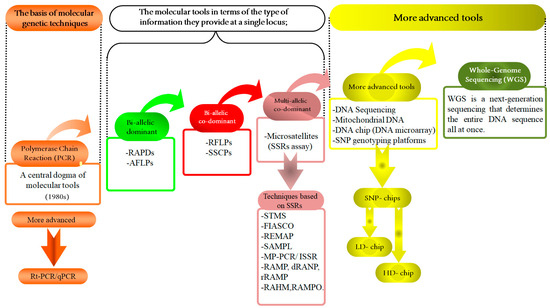 The advent of molecular tools provided a more objective and detailed picture of genetic variation within and between breeds. These markers directly assess the genetic makeup of an animal, offering several advantages [17,18].