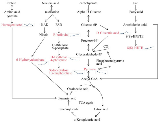 As previously described, intermediate metabolites, such as those circulating through the TCA cycle, may influence substances within metabolic processes. These intermediates generally tend to convert products to lower levels. Although goose breast meat is maintained at a moderate temperature, the nutrients are susceptible to bacterial consumption and deterioration with the extension of the preservation period.