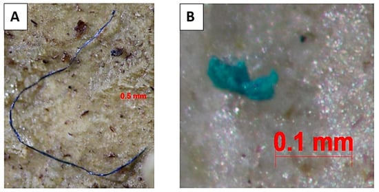 Microplastic observation and analysis was conducted under a stereomicroscope (Zeiss Stemi 305 Standard K-Lab, Oberkochen, Deutschland). Under the stereomicroscope, all MP samples were examined and photographed using a digital camera (Cannon EOS 800D, Tokyo, Japan) with AxioVision LE image analysis software (version 4.8, Carl Zeiss Microscopy, White Plains, NY, USA). MP abundance, color, and morphology (fiber, fragment, pellet or foam, non-patterned or irregularly shaped fragments) were identified visually if they satisfied the characteristics described in Thamsenanupap et al. [15]. To control for MP contamination during sample collection, processing, and analysis, a combination of measures was implemented including the use of glassware instead of plastic, regular cleaning of the lab area, working in a fume hood, and wearing cotton clothing. All sample analysis was conducted using laminar flow cabinets equipped with HEPA filters to minimize the risk of contamination.