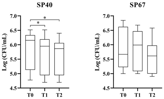 The antibiotic resistance profile was determined by the Kirby–Bauer disc diffusion method according to the Clinical Laboratory and Standards Institute guidelines, and the panel of antibiotics used was the same as previously reported [7]. SP40 was classified as non MDR while SP67 was considered MDR. Moreover, the literature search revealed two multiplex PCR (M-PCR1 [76] and M-PCR 2 [77]) reactions and these were used to amplify antibiotic resistance genes (ARGs). M-PCR1 targeted mecA and blaZ genes, while M-PCR 2 tetK, tetM, and aacA-aphD genes, nucleotide sequences, and amplification conditions were as already described [76,77]. Table 1 reports the antimicrobial resistance profiles of microorganisms used in this study.