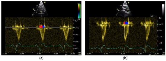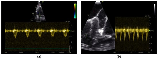 - Ginghina, C.; Muraru, D.; Vladaia, A.; Jurcut, R.; Popescu, B.A.; Calin, A.; Giusca, S. Doppler Flow Patterns in the Evaluation of Pulmonary Hypertension. Rom. J. Intern. Med. 2009, 47, 109–121. [Google Scholar]