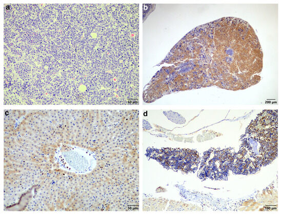 - Majzoub, M.; Breuer, W.; Platz, S.J.; Linke, R.P.; Linke, W.; Hermanns, W. Histopathologic and immunophenotypic characterization of extramedullary plasmacytomas in nine cats. Vet. Pathol. 2003, 40, 249–253. [Google Scholar] [CrossRef]