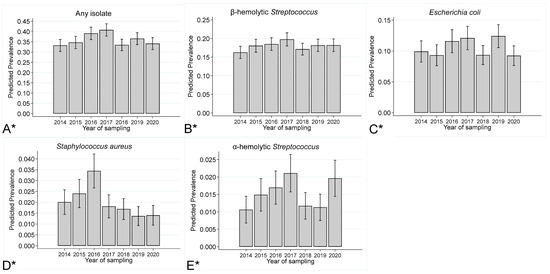 Mouncey R, Arango-Sabogal JC, Rathbone P, Scott CJ, de Mestre AM. Prevalence of Microbial Isolates Cultured from Endometrial Swab Samples Collected from United Kingdom Thoroughbred Mares from 2014 to 2020. Veterinary Sciences. 2024; 11(2):82. https://doi.org/10.3390/vetsci11020082