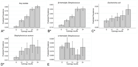| Cytology Result | Microbial Growth (%: 95% Confidence Interval) | Isolates (%: 95% Confidence Interval) | |||