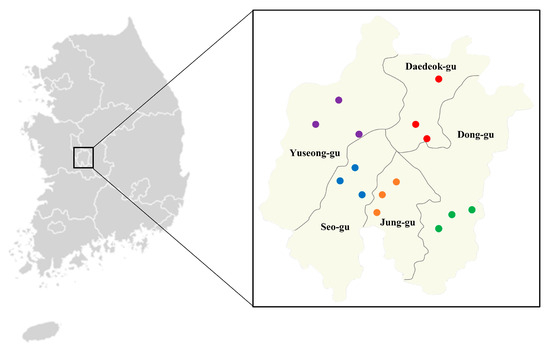 | Daedeok-gu | Gilchi-Neighborhood park | 36°36′19″ N 127°45′82″ E |