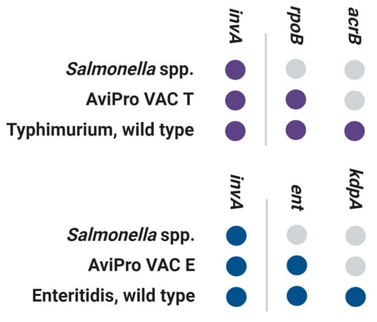 - Ceyssens, P.-J.; Van den Bossche, A.; Phan, L.K.; Van Hoorde, K.; Mattheus, W. A molecular assay for rapidly distinguishing the AviPro Salmonella VAC T vaccine strain from wild-type field isolates. J. Microbiol. Methods 2021, 184, 106190. [Google Scholar] [CrossRef] [PubMed]