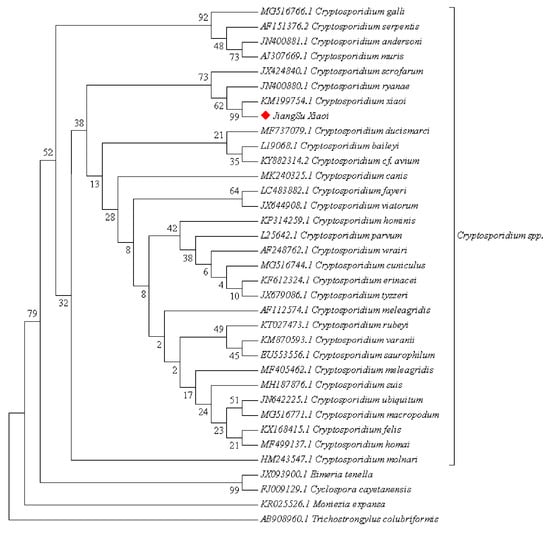 - Yang, J.; Li, R.; Zhang, Y. Investigation and Species Identification of Cryptosporidium Infection in Sheep and Goats in Wuzhong City, Ningxia. Chin. J. Ani Inf. Dis. 2019, 27, 72–78. (In Chinese) [Google Scholar]