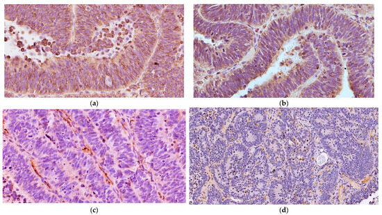 Microscopically, the neoplastic cells were densely packed, arranged as pseudostratified or multilayered trabecular and tubular structures (Figure 3a), supported by delicate vascular stroma with a PAS-positive external limiting membrane. The internal surface was covered with indistinct amorphous material, and limiting membranes were barely observed (Figure 3b). Some multilayered Homer Wright rosettes (i.e., an arrangement of cells surrounding an indistinct lumen) were occasionally present. In areas adjacent to trabecular structures, sheets of poorly differentiated cells were also found (Figure 3c). The cells had small, slightly elongated, and hyperchromatic nuclei with scant cytoplasm. Numerous mitoses (up to 30 mitoses per high power field, 400×, 0.237 mm2) were mainly observed at the luminal aspects of tubular structures, and the Ki-67 nuclear labeling index was up to 90% (Figure 3d). The stroma was composed of capillary structures, supported by sparse GFAP-positive cells. All neoplastic neuroepithelial cells were diffusely immunoreactive for vimentin (Figure 4a) and NSE (Figure 4b) and negative for GFAP (Figure 4c), Olig2 (Figure 4d), synaptophysin, PCK, S-100, NeuN, and nestin. Based on the histopathological and immunohistochemical results, a final diagnosis of MEPL was made.