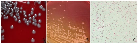 The 16S rRNA gene was amplified using specific primers (27F, 5′-AGAGTTTGATCCTGGCTCAG-3′, and 1492R, 5′-CGGCTACCTTGTTACGACTT-3′). The PCR mixture consisted of 12.5 µL of 2 × Taq PCR Master Mix (Tiangen, Beijing, China), 1 µL of the primer (10 µmol/L), and 9.5 µL of distilled water. A small number of bacteria picked from a single colony on the Columbia blood agar plate using a sterile pipette tip was used as the PCR template. The PCR amplification program included an initial denaturation at 95 °C for 3 min, followed by 35 cycles of denaturation at 95 °C for 30 s, annealing at 55 °C for 30 s, and extension at 72 °C for 1 min. A final extension took place at 72 °C for 5 min. The PCR product (5 µL) was resolved by electrophoresis on 1.5% agarose gel for 30 min at 120 V. Subsequently, the agarose gel was stained with ethidium bromide and screened using a UV illuminator (Aplege, Pleasanton, CA, USA). The target DNA was purified and recovered using a DNA gel extraction kit (Trelief, Beijing, China) for sequencing by Beijing Tsingke Biotech Co., Ltd. in Beijing, China.