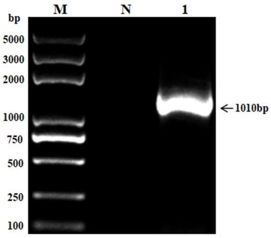 The amplified PCR products were subjected to 1.5% agarose gel electrophoresis to obtain the target gene band of expected size (1000–2000 bp) (Figure 2). The obtained 16S rRNA gene sequence from the M. morganii strain isolated from a rhesus monkey was determined to be 1010 bp in length.
