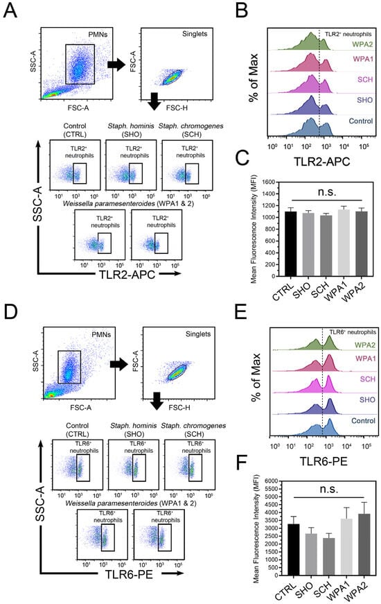 - Blagitz, M.G.; Souza, F.N.; Batista, C.F.; Santos, B.P.; Parra, A.C.; Azevedo, L.F.F.; Della Libera, A.M. Expression of CD14 and Toll-like receptors 2 and 4 by milk neutrophils in bovine mammary glands infected with Corynebacterium bovis. Pesqui. Vet. Bras. 2015, 35, 1–5. [Google Scholar] [CrossRef]