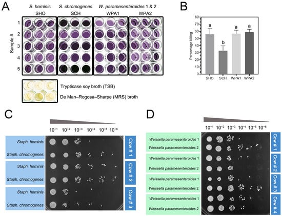 - Isaac, P.; Bohl, L.P.; Breser, M.L.; Orellano, M.S.; Conesa, A.; Ferrero, M.A.; Porporatto, C. Commensal coagulase-negative Staphylococcus from the udder of healthy cows inhibits biofilm formation of mastitis-related pathogens. Vet. Microbiol. 2017, 207, 259–266. [Google Scholar] [CrossRef] [PubMed]