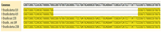 2.5. Identification of the DNA Sequence That Distinguishes Brucella A19 from Other Strains