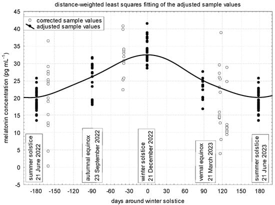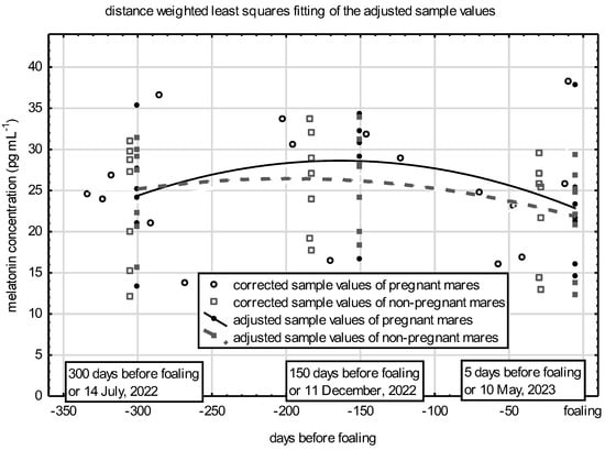 Harmat, L.; Nagy, J.; Somoskői, B.; Alpár, A.; Fekete, S.G.; Gáspárdy, A. Determination of Rhythmicity and Gestational Stage-Related Distribution of Blood Plasma Melatonin Concentrations in Donkey Mares. Vet. Sci. 2024, 11, 310. https://doi.org/10.3390/vetsci11070310