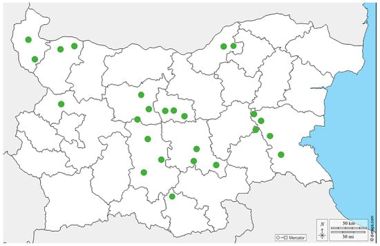 Figure 1. Map of the sampling sites from different regions in Bulgaria.