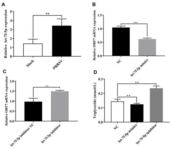 APA StyleJiang, D., Yang, L., Meng, X., Xu, Q., Zhou, X., & Liu, B. (2024). Let-7f-5p Modulates Lipid Metabolism by Targeting Sterol Regulatory Element-Binding Protein 2 in Response to PRRSV Infection. Veterinary Sciences, 11(9), 392. https://doi.org/10.3390/vetsci11090392