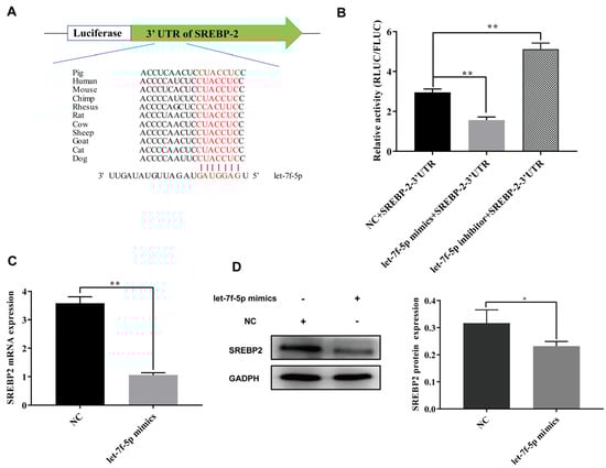 3.4. Let-7f-5p Directly Targets SREBP2 to Modulate Lipid Metabolism