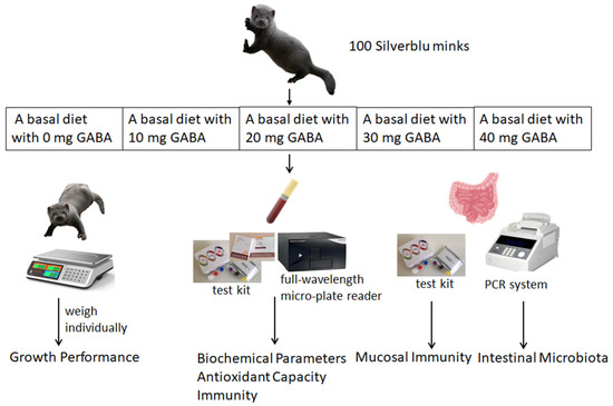 Li, Y.; Zhen, S.; Sun, F.; Cao, L.; Wang, L. Effects of γ-Aminobutyric Acid on Growth Performance, Immunity, Antioxidant Capacity, and Intestinal Microbiota of Growing Minks. Vet. Sci. 2024, 11, 398. https://doi.org/10.3390/vetsci11090398