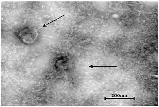 Electron microscope observation results of YBYJ1 (×20,000).cation). Viral particles are highlighted with black arrows.