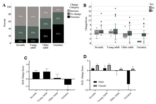 - Neal Webb, S.J.; Schapiro, S.J.; Sherwood, C.C.; Raghanti, M.A.; Hopkins, W.D. Neutrophil to Lymphocyte Ratio (NLR) in captive chimpanzees (Pan troglodytes): The effects of sex, age, and rearing. PLoS ONE 2020, 15, e0244092. [Google Scholar] [CrossRef]